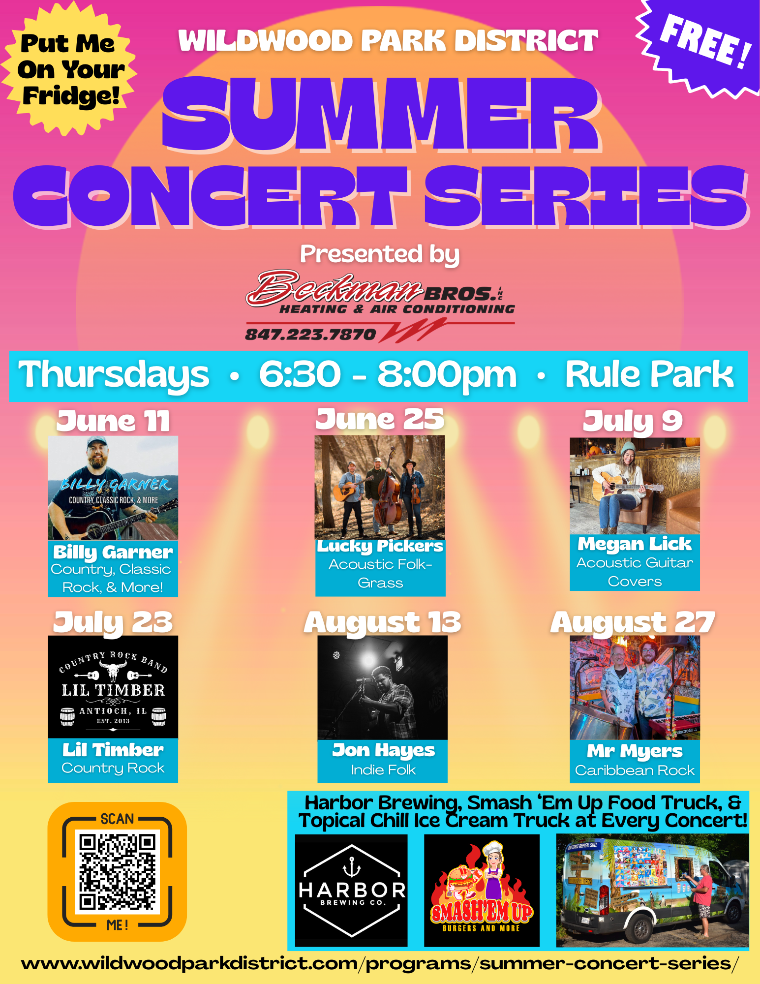 The Wildwood Park District is excited to announce our fifth annual FREE Summer Concert Series! Come on out to Rule Park and enjoy live music, delicious food, an ice-cold beer or seltzer, and ice cream every other Thursday evening, June through August, from 6:30-8:00pm. Feel free to join us at the park for a front-row show, or anchor your boat and listen to the tunes from the water! Either way, get ready for an evening of great music and summer fun with family, friends, and neighbors!